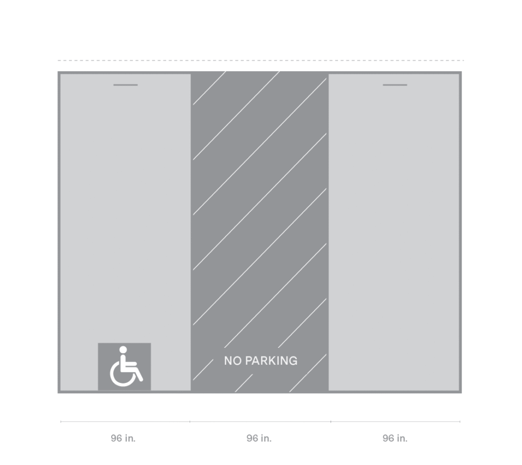 - Accessible parking: If a project requires a specific number of spaces, it may need to include an accessible parking spot with extra width and an access aisle to comply with accessibility regulations. The model International Building Code, copying from Americans with Disabilities Act standards, requires one accessible parking space if a total of up to 25 spaces are provided.31 So, even a fourplex with four parking spaces is required to make one of them compliant with accessibility standards, which requires ample space and proper grading. That space, plus the aisle, could take the place of two normal spaces.