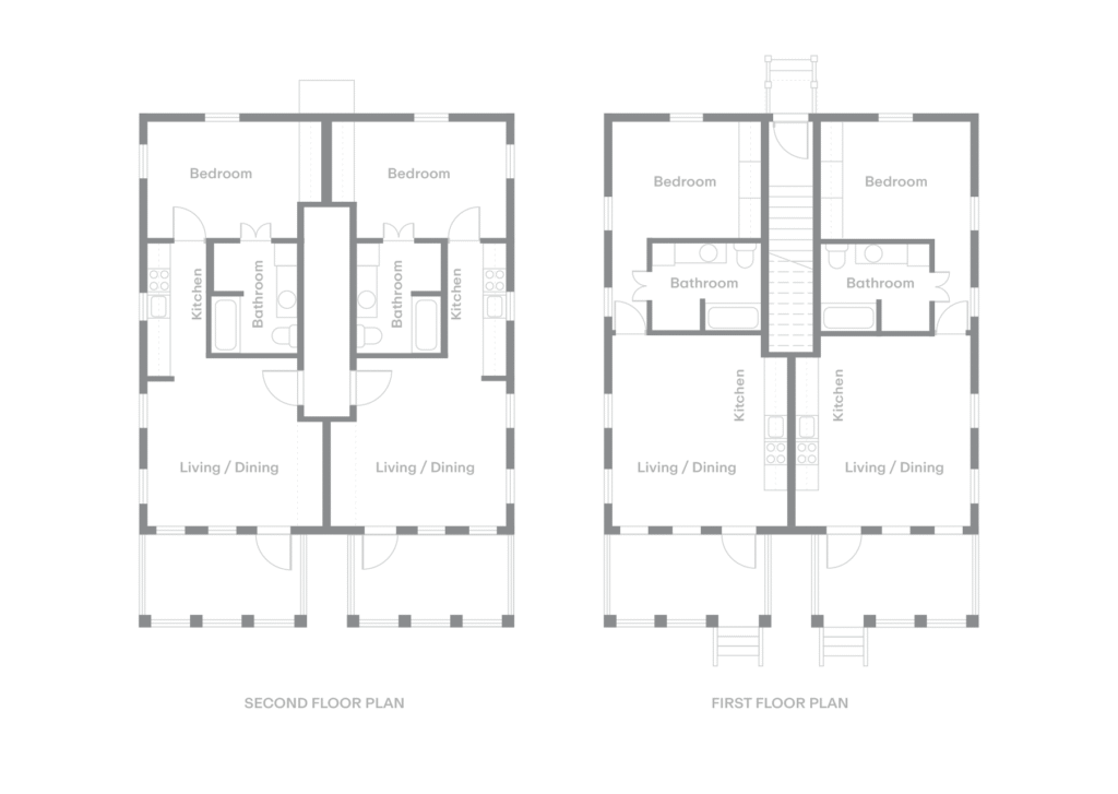 The design of Malone Park Commons focused on human-scale housing types: small detached or semi-attached structures no taller than two stories, with private front doors, porches, and pedestrian courtyards. But as soon as the unit count for any given building exceeded two, the development was brought under the commercial building code regime of the International Building Code (IBC) and more stringent local regulations. That meant: